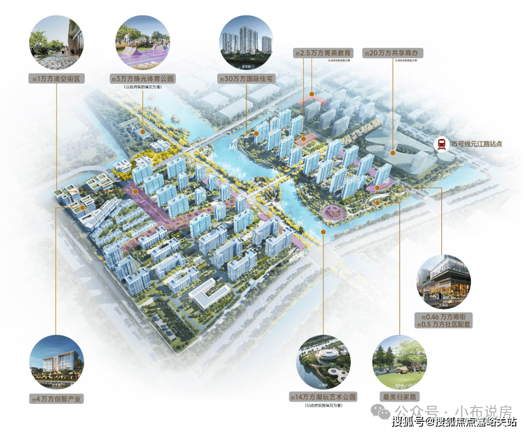 口约20万方双公园,自带高光的城市配角!项目将公园及天然水系引入社区,约3万方活动竞技公园+约14万方滨水艺术潮水公园+城市绿地,以约20万方滨水双公园,形成一幅天然生态下的超等TOD底盘。