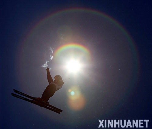 2月16日,一名参赛选手正在高难度的空中技巧。当日,持续两天大雪之后的雪场显露阳光,正在赛场进行高难度锻炼的选手送空腾起,身影正在阳光下形成一幅幅斑斓的画面。 记者任正来摄